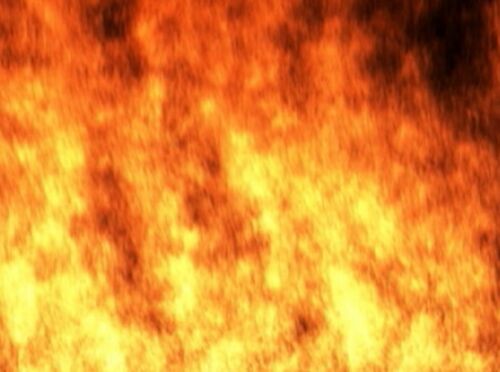 上レイヤー(炎):減算 下レイヤー(建物):通常 建物の黒い部分は0なので炎の色がそのまま出る。 青と赤のコントラストが、中の熱さを引き立てている。