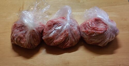バラバラ殺人の現場かな?いいえ、ハンバーグの小分けです(4つできて、1つ食べた) レシピを見たら、牛乳+パン粉を入れていた https://www.sirogohan.com/recipe/hanba-gu/ 牛肉の臭みなどを消す&水分量が増えてやわらかく仕上がる、という効果があるそ…
