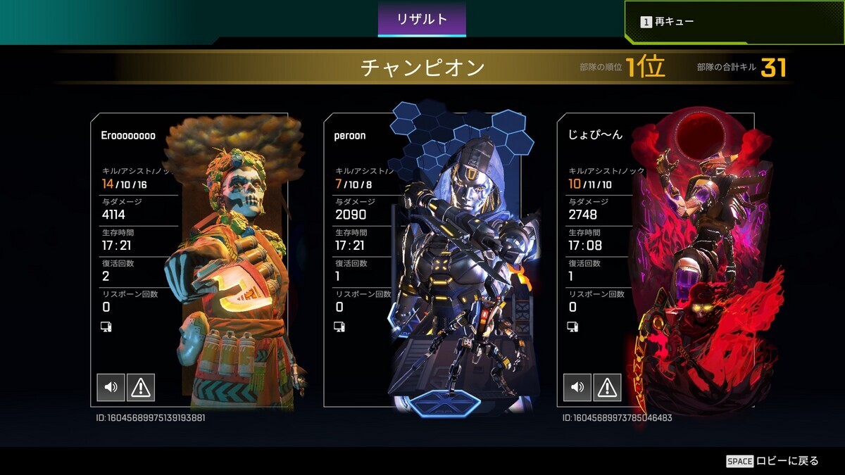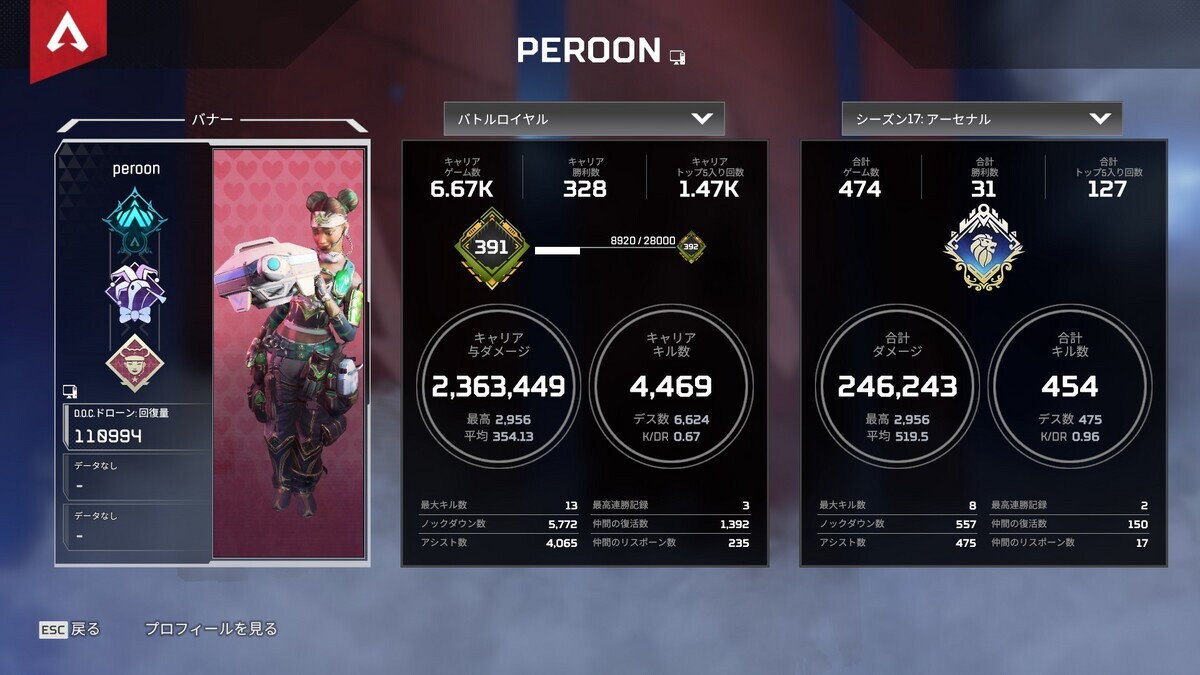 2022/07/31 æè¿ã©ã³ã¯ãäœæéãåããŠãããG2 2022/07/30 ãã©ãã®ãŠã«ãïŒããŒããŒã匷ã çŸåšG3 çªé²ããŠã¯ããŠã³ãããã©ã€ãŸã³ã«ã€ã©ããšããŠæããchat "?" æ®ãã®ïŒäººã§ã«ããŒãããã圌ã«ãã¢ã·ã¹ãå ¥ãã®ãã... äœãç²ããŠããããã€ã©ããšããã®ããªãããã§ãã¬ã€ãäžæŠæ¢ãã 2022/07/28, 29 ä¹ ãã¶ãã«ã©ã³ã¯ïŒãŽãŒã«ãïŒïŒãåããšæŠããã®ã§ æ°æéã¶ã£ã€ã¥ããŠãã¬ã€ ãŽãŒã«ãïŒäžå€®ãããã§åæ»ãæŠãããšæã£ãã®ã¯åéãã 2022/07/27 è€äºè¡å€ªæ°ãã ã»è² ããåŒãã¥ããªã ã»æ¥œãã 2022/07/26 æã¡ãªããèœã¡ãã£ãŠã®ã¯å€§äºãã æã¡çµãã£ãŠããäžããã®ã¯ç¡é§ãªã®ã§ ã«ãžã¥ã¢ã«ãšãŠãçªã®ããã«çªã£èŸŒãã®ã¯ãããã ãã°ãèŠãŠãæé©ãªã¿ã€ãã³ã°ã§è¡ããã 2022/07/21 ã«ãžã¥ã¢ã«ã§ã¯ãŒã«ããšããžãªãæ°è©Šå/æ¥ æçµçã«ãã©ããè¡ããããããªãš ä»ãã©ãããªãäžäœ10% é ä¿¡ã§ã¯cheekyãããèŠãŠã 2022/07/10-11 æå·ãµã©ã12hãã¬ã€ã§ãã©ããã«è¡ã£ãŠãã ä»ã®ãã©ããïŒæ§ãã€ã€ ãããã®äŸ¡å€ãªã®ã㪠2022/07/07 ã¹ã©ã€ãã£ã³ã°ã¢ãŒããŒã¹ã¯ãããèªç¶ãšãã£ãŠãã 2022/07/06 ãŽãŒã«ã垯ãäžç¬ã§æº¶ããããã®ã§åãŠãªãïŒæ®ãïŒïŒæ¥ïŒ ã¯ãŒã«ãºãšããžã®åŒ·ããžããã€ãããžãèŠããŠããªã 2022/07/01 ãã³ã¬ããŒã«ã§ã©ã³ã¯ãåããŠãããS13-2 çŸåšã·ã«ã㌠ã¯ãŒã«ãºãšããžè¯ããçã€ãã·ã·åããŠãã ã¹ãã³ ç·ç£ãè³Œå ¥(1200)ãé»ããŠçްããŠåœãŠã¥ããããªã®ã§ 2022/06/25 LV500 2022/06/15 æãã®åæ ã»ãã³ãããã®ã«åããã ã»èµ·ãããæã«èµ·ãããªã selfishãããããªãããã«ãžã¥ã¢ã«ãªã®ã§ã â远èšïŒçæ°ã§ã¯ïŒãã®æ¥ã®äœèª¿ã®ããã㪠2022/06/13 YKããŒã¿ããããã£ã³ãã«ç»é²ãã åç»ã®è³ªãé«ã 2022/06/10 ååã«ã©ã³ã¯ããŽãŒã«ãã«äžãã£ã ååã¯ãœããå€ããŠåŒ±ããšããèª¬ã¯æ¬åœãããããªãïŒç§ããœã çŸæç¹ã§äžäœ26.6%çš https://apexlegendsstatus.com/game-stats/ranked-distribution ãŽãŒã«ãã«æœã£ãŠã¿ããããŽã«ïŒã°ããã åã·ãŒãºã³ã®ãã©ïŒæºãŸããšåãå°è±¡ã§ãæŠããªãã¯ãªã 2022/06/08 æªã話ã ãŠã£ã³ã°ãã³ãç·Žç¿ãã«ã¢ãªãŒããžãäžã åãŠãªã åæŠãããŠã£ã³ã°ãã³ãè²·ããšã·ãŒã«ããè²·ããªãã®ã§ãµãã©ã€ããã¯ã¹ããåãã ãšæã£ãŠãã³ããããŠåãã«è¡ãã峿¹ã®ãªã¯ã¿ã³ãå šéšæã£ãŠãã ã·ãŒã«ããèŠããšããéç¥ãåºããŠããã®ãŸãŸæŠéã«ã ã¢ãªãŒãéå§åãèµ€ãã³é£æããŠããããã£ãã®ã§é¢è±ã ïŒïŒåããã«ãã£ãããããåŸ ã¡æéã«ã¯è±åèªãèŠããŠããŠè¡ãããšãªã£ããšã ïŒåã»ã©ãããå»¶é·ãããã峿¹ããã®éå ±ã§å»¶é·ãããã®ã㪠æ¯ãè¿ããšã 峿¹ã®è¡åã«ã¹ãã¬ã¹ãæããã®ãããã æ £ããªããŠã£ã³ã°ãã³ã䜿ã£ãŠããŠåã¡ã¥ããããšãèåŸã®åå ãªã®ããã äžè¬åãããšã äœãã«ã€ã©ããšãããšããä»ã«ãåå ããããããããªããšããããšã 2022/06/06 ã«ãžã¥ã¢ã«ã§åŒ·ãæã«æŸã蟌ãŸããããšãããŸã«èµ·ããããã«ãªã£ã barkãšãããã¬ãã¿ãŒã«ããã·ã§ããã ããã€ã¹ç»é²ãµã€ãGearticsã«äœã£ãŠã¿ã https://www.geartics.com/peroon 2022/06/05 AM ã«ãžã¥ã¢ã«ã§ã»ã³ããRuãšCARã§ 2000dmg championåºã äžåºŠéæãããã®ã¯ãããä¹ãè¶ãããããªãã®ã 2022/06/02 ãã³ããŒç²åŸ æåŸã¯ãã«ãã«2ã¹ã³ãCAR ãªããŒãæã«ã¿ããã¹ãã¬ã€ããããŠããªããå·éã ã£ã ãã£ãŒã©ã€ã¯ååæã£ãŠãããããã¯ãã¯äœæŠã§ã¯ãªã ãã³ããŒèªç¶ã«åããããããªãšæã£ãŠãããçµæ§æéãããã£ã 2650詊åã1200æé