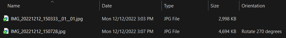 - Explorer (Windows 11)でOrientationを表示してみると、下記のように回転がかかっている